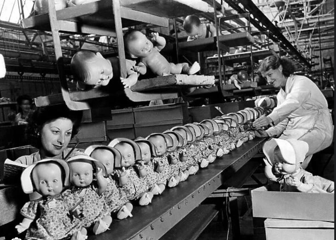 This video shows how dolls were made during the shift to mass production. Source: British Pathé on YouTube, 2015