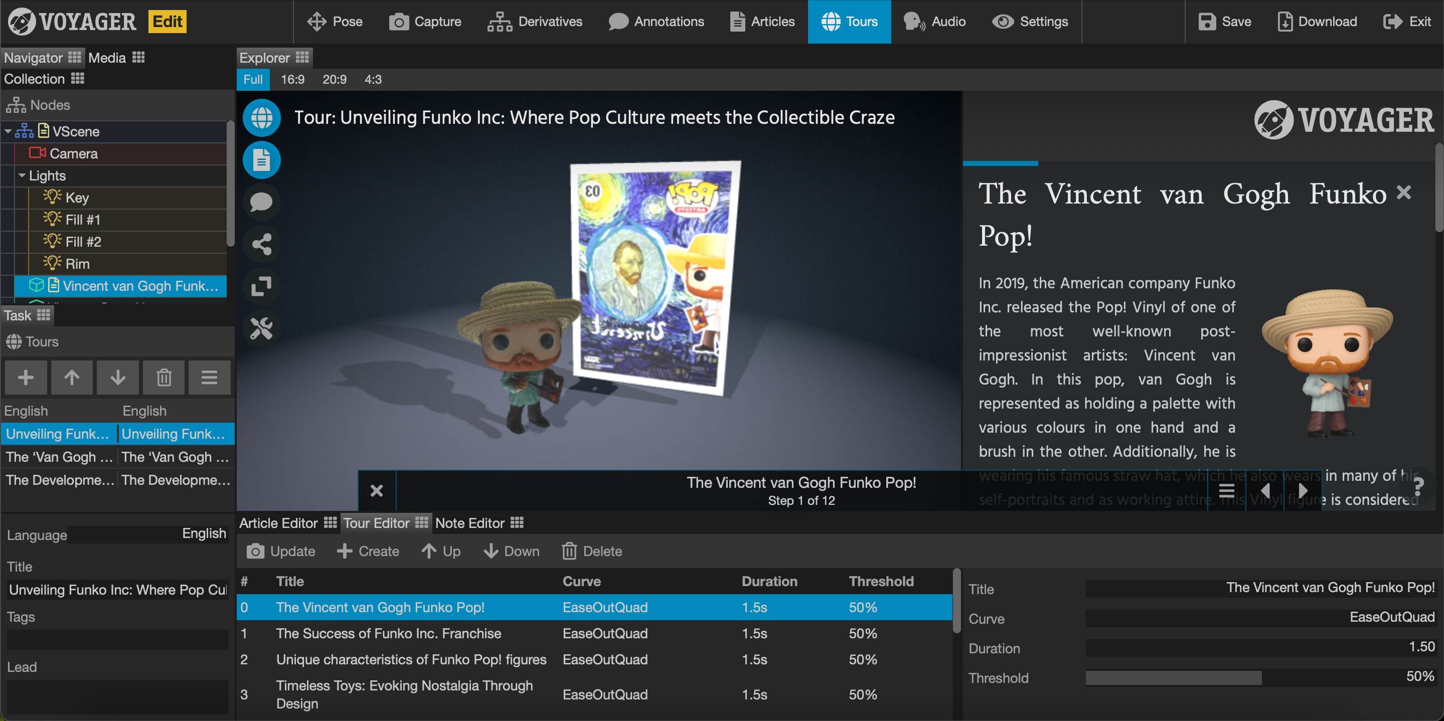 Despite these reasons, Voyager is a great website for creating 3D Scholarly Editions. Thanks to its multimodality functions, we were able to create two Tours that tell the stories hidden behind the Vincent van Gogh Funko Pop!.