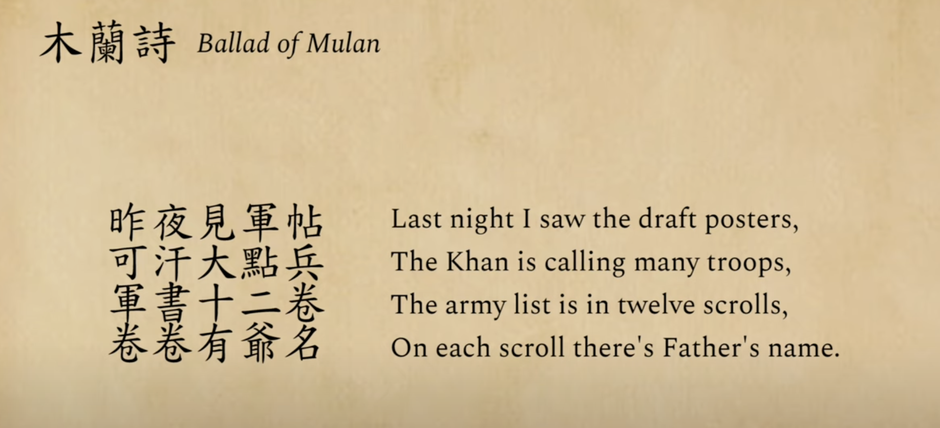Fubing system demands the soldiers prepare essentials and weapons by themselves (Yang, 2018). As the Mulan ballad describes how Mulan purchased everything needed soon after she decided to replace her father and join the army: