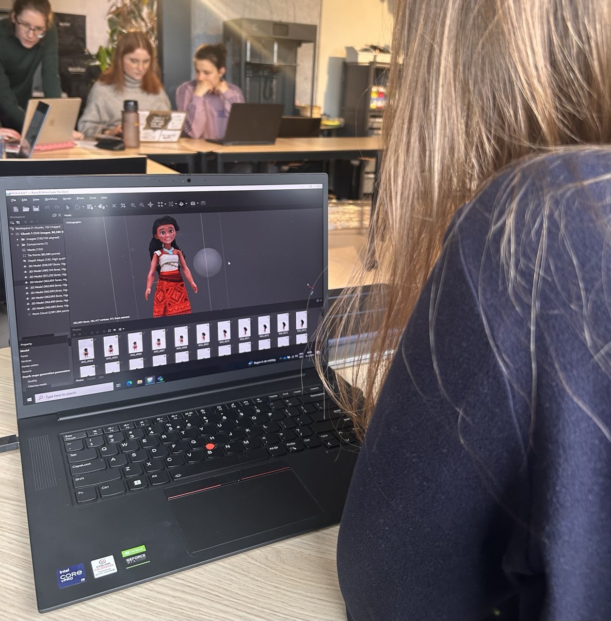 At that point, the work in Metashape was finished. It took a bit of trial and error to figure everything out, but overall, it was a clear and manageable process. The more complicated part came after, when we needed to remove the colourful stickers we used earlier to help the software recognise smooth areas. We tried editing the texture in Photoshop, but that didn’t really work, mostly because of the complexity and our limited experience.