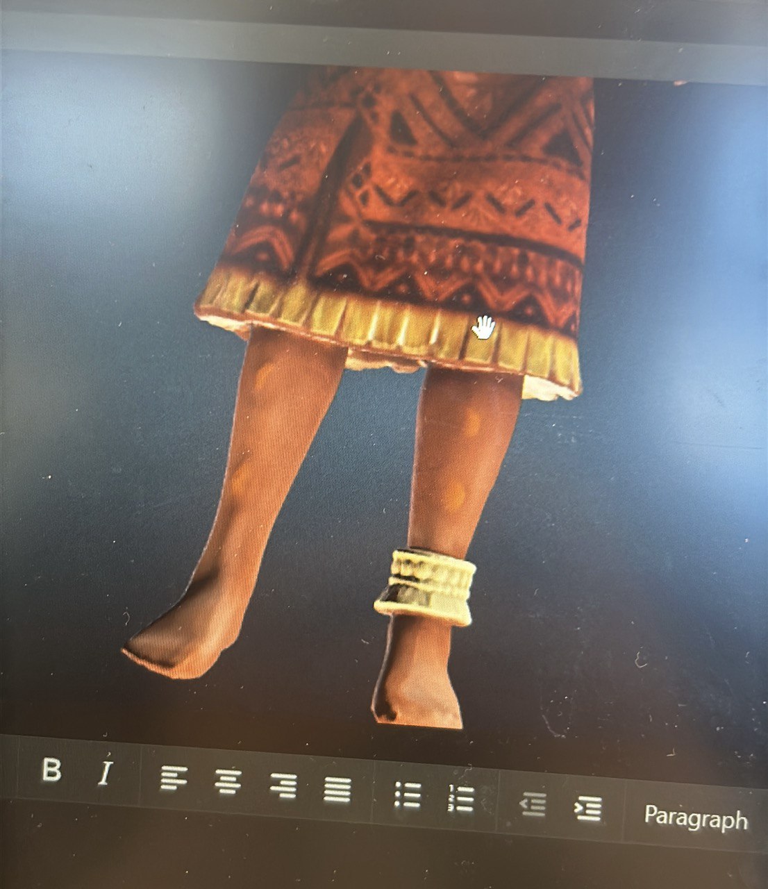 To fix this, we created holes under her arms and then closed them. While closing the holes, the software automatically imported nearby texture and colour, and it looked much better. A similar issue happened with her foot, which had no texture at all, because we hadn’t captured that angle properly during the photoshoot. We used the same method there and later painted the foot in Blender to match the correct skin tone.