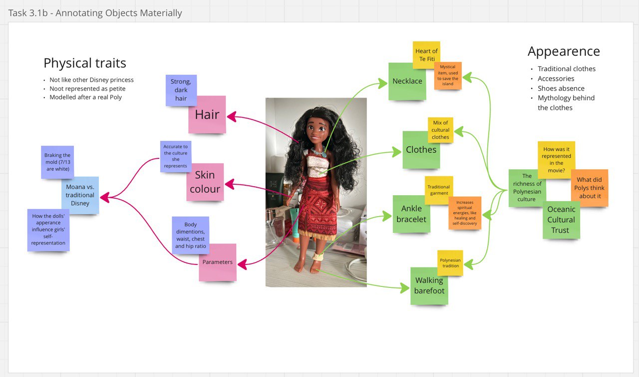 Using Voyager was a smooth experience. Even though it takes away the physical interaction you might have with a real doll, it gave us a way to combine different parts of our project in one place. We were able to link the 3D model with our written articles and audio to guide the viewer through Moana’s story. Instead of just looking at a digital object, users can click on her necklace to learn about her grandmother, or explore her outfit while reading about traditional Polynesian clothing. This made the experience more interactive and helped us present Moana not just as a character, but as someone connected to real culture and history.