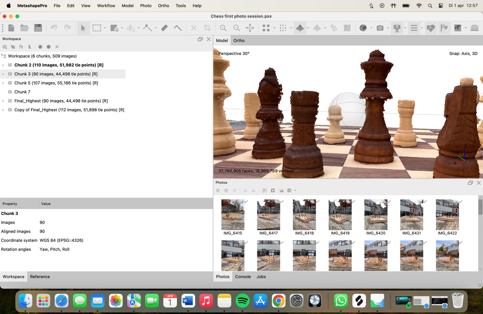 We digitized the board itself in Agisoft Metashape and found that this went pretty well. The texture and surface of the wooden chessboard were well-suited to conversion to the software, and the initial result was so good that very little adjustment had to be made.