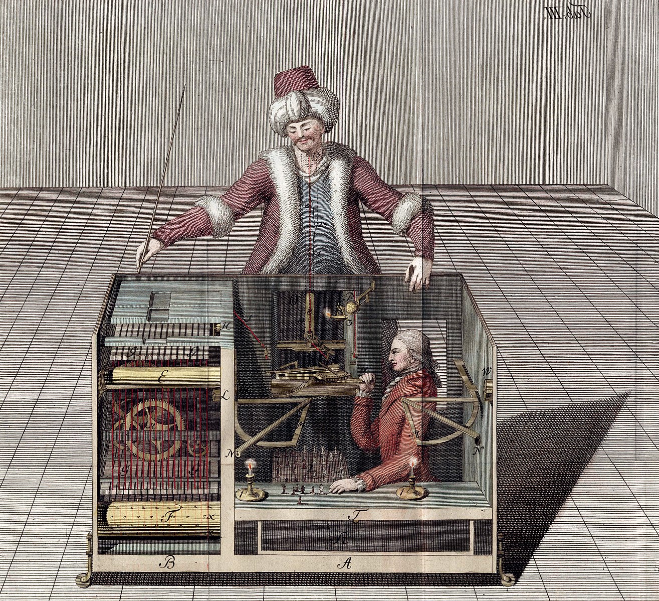 The tale starts in the late 1700s with The Turk, a remarkable machine built by Wolfgang von Kempelen. The machine was exhibited as a chess-playing machine that would play by itself and could defeat human players. This machine, though, was a fake: the machine was being manipulated by a human chess master hidden within. Despite The Turk being a deception, the invention triggered human imagination of a chess-playing machine. It planted the seeds for further development of machines that are able to play chess and eventually outsmart human chess players.