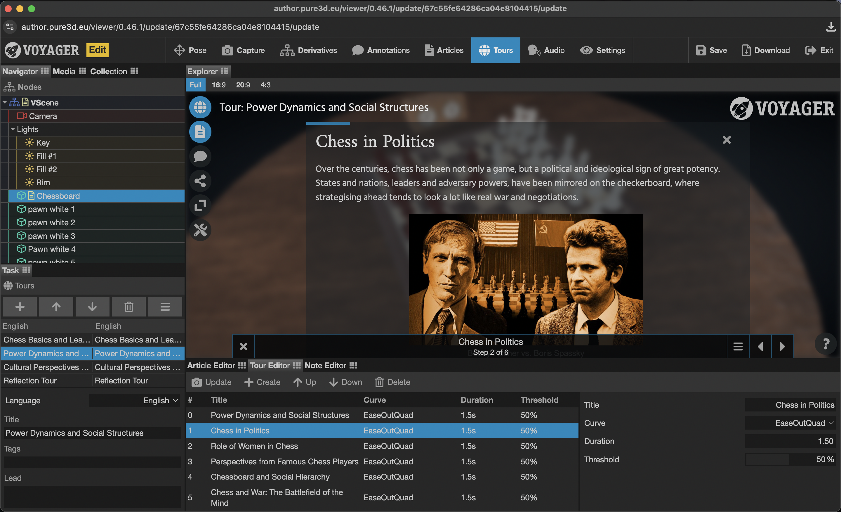Browser issues – Some features would not function unless we had Voyager open in private mode; File compatibility – Importing 2D images as 3D models needed to be converted through Blender; Annotation Placement – Putting the pieces and maintaining the board layout visually appealing was trial and error.