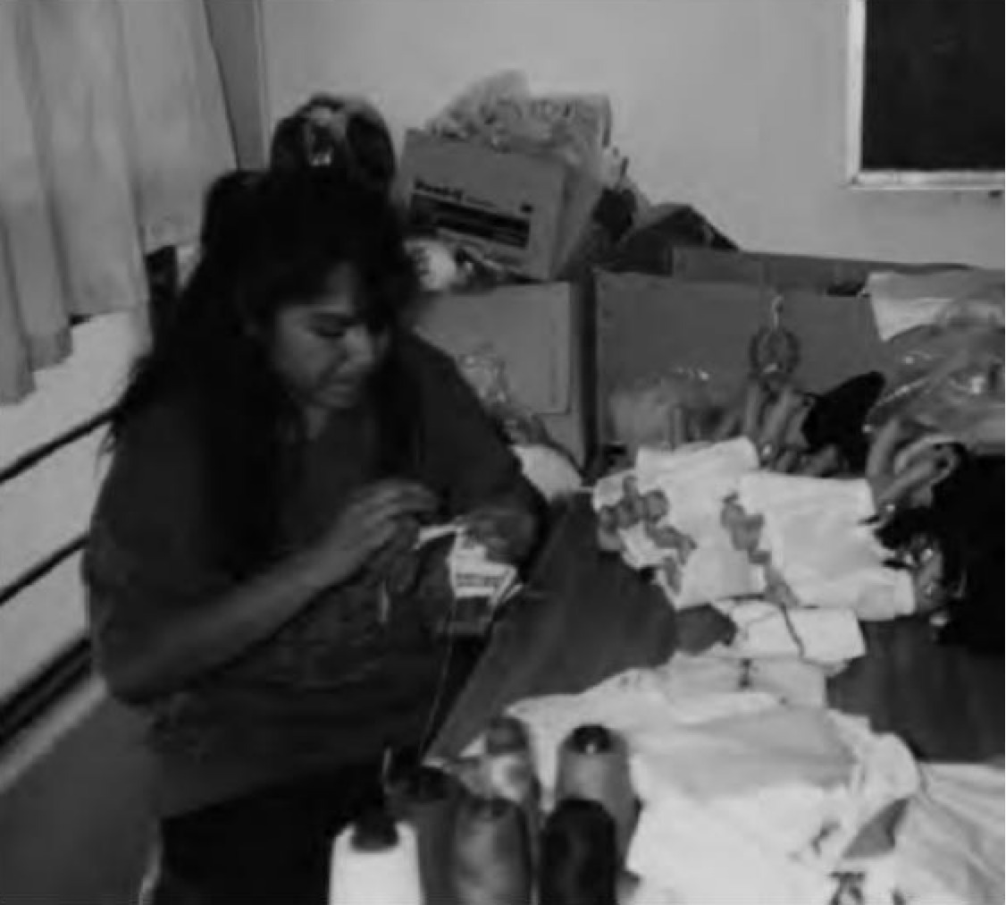 In the production line, the artisans each have a specific role, to improve efficiency and quality. One individual is responsible for creating and cutting all the necessary dress designs and moulds for the dolls, ensuring consistency and precision. Another artisan focuses exclusively on sewing, piecing together the fabric components. A different person is responsible for stuffing the dolls and dressing them. Embroidery, a crucial aspect that adds intricate details to the dolls, is handled by another, who adorns each doll with patterns and designs. Yet another individual fits the dolls with wigs, styling them to reflect the specific ethnic group the doll represents, and adds facial features like eyes, nose, and mouth through embroidery or adhesion. Finally, another artisan completes the process by assembling all the components (Lazcano Arce, 2005).