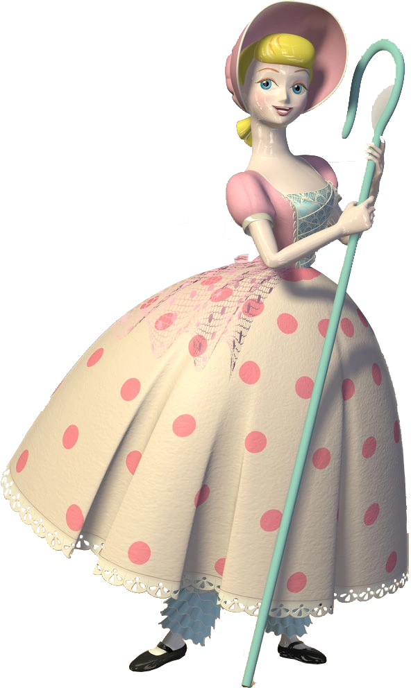 Bo Peep is introduced as a secondary character in the first two Toy Story movies and a short appearance in the third. However, she reappears in the fourth movie as a major character. Bo Peep is a porcelain figurine character in a classic shepherdess attire, including a bonnet and a staff.