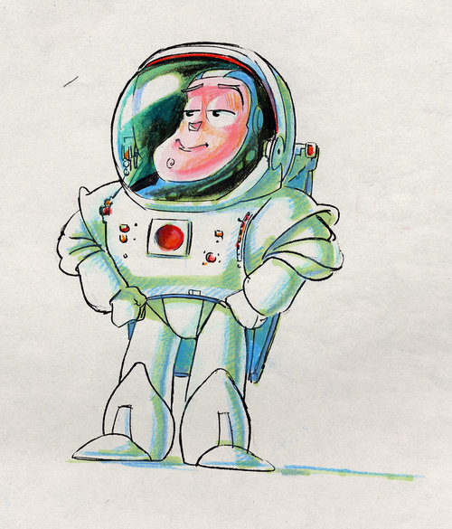 Tinny’s name changed to Lunar Larry, then Tempus from Morph, and eventually Buzz Lightyear after astronaut Buzz Aldrin (Lasseter et al., 2010). The director (Lasseter) changed Tinny’s character to a military action figure and opted for the space theme. The inspiration for the character design of Buzz was suits worn by Apollo astronauts and G.I. Joe action figures. The material that makes him up, rigid plastic, is what gives him his inflexibility and inflexible mentality as well as his strength of character (Lasseter et al., 2010).