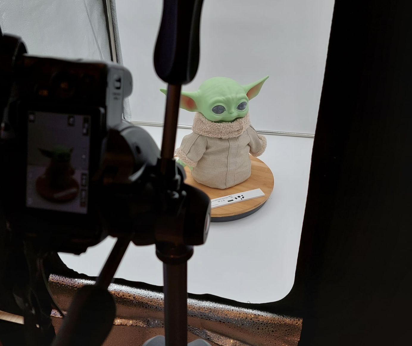 Our first steps into the 3D modeling of our toy began with Photogrammetry. Photogrammetry is a modeling technique that relies on the recording and measure of physical objects and environment through photographs, to generate information (Papadopoulos, n.d). The quality of our model was relying on important aspects from this technique. In order to obtain a model that is complete and precise, we needed to take close photographs of our toy, with a high percentage of overlap in between the images. Similarly, the lighting in the photographs was essential, and the object’s positioning could not be altered throughout the photographing session. Through the process, we learned to use basic photography skills, such as exposure time, F-Stop, and ISO, to capture better quality pictures.