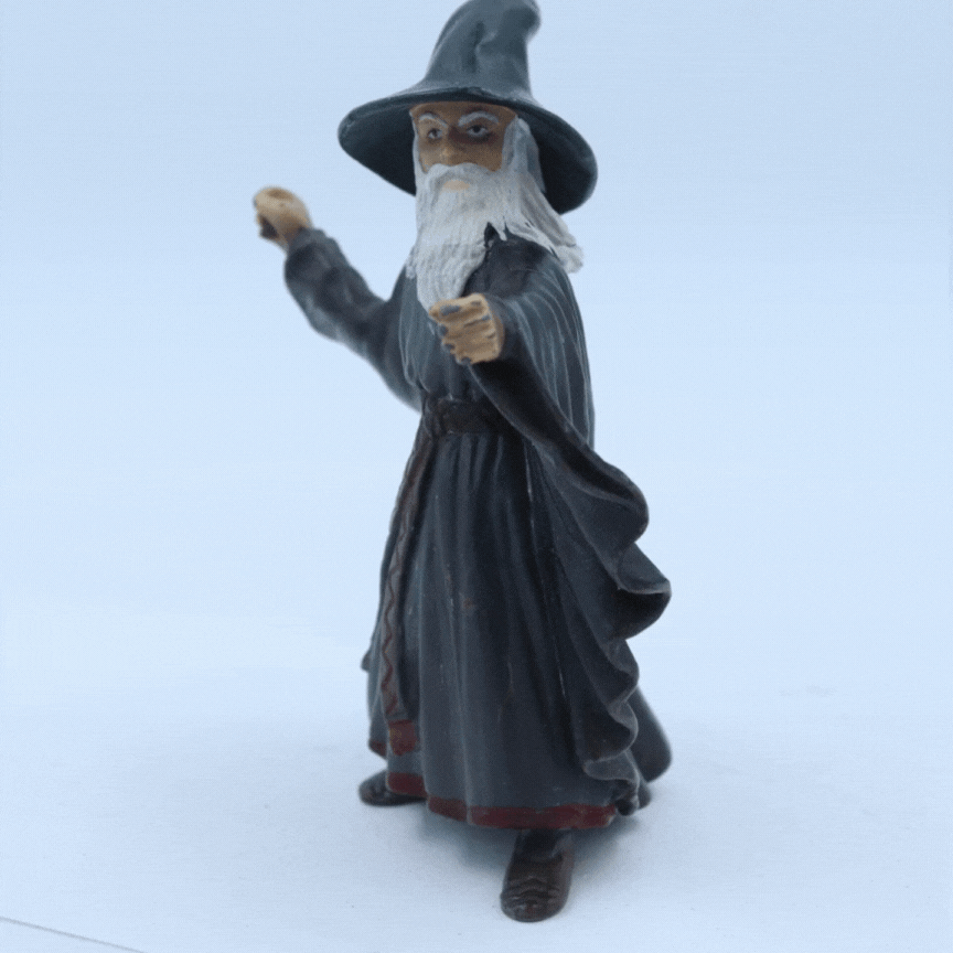 During the digitization process of the wizard figurine, we have encountered a few difficulties. As seen in the model and the annotations you will be directed to after reading this article, there are a few signs of pixelated and discoloured areas around both hands. The reason why both hands still look like this is because the model did not seem to be capable of smoothing out the surface and adding the same kind of colour to fill it. The grey areas on the hand are because of wear and tear over the years, the figurine has been in the possession of Marisa since 2004 and has been used.