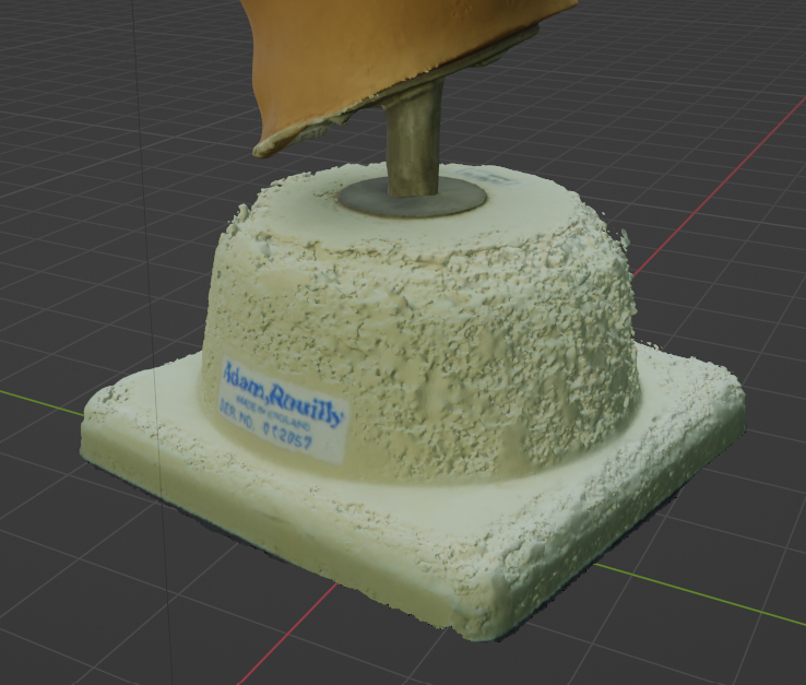 While Structure-from-Motion was effective in creating the 3D model of the face, the reflective plastic base proved challenging. The shiny surface made it difficult for the software to capture accurate details.