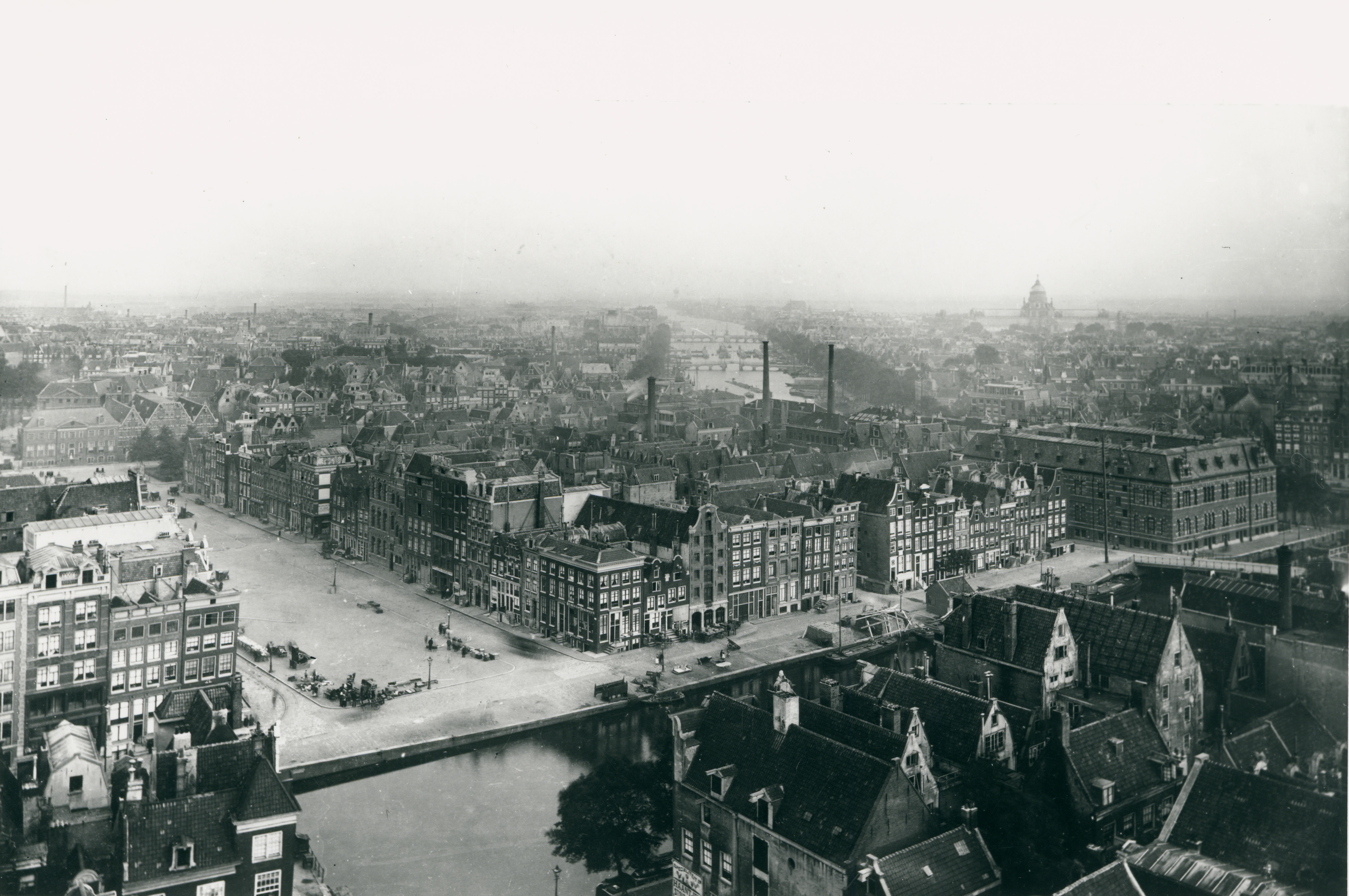 We pick up the evolution of Vlooienburg again in 1890. The neighbourhood has changed a lot. The industrial revolution, which arrived late in Amsterdam, is now on full speed. Vlooienburg, like many other neighbourhoods in Amsterdam, quickly transformed into a place where too many people lived packed in slum like conditions. In between the houses, industry rose, in this location: large diamond factories. The visual documentary evidence of the neighbourhood increases in the second half of the 19th century after the invention of photography, which allows us to have more accurate and detailed picture of the physical composition of the neighbourhood.
